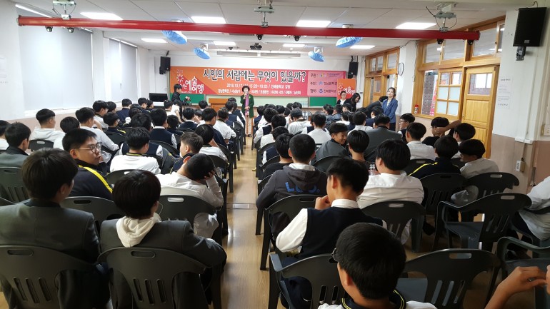 신나는 예술여행 프로그램 (시인의 서랍에는 무엇이 있을까/ 진해중학교) 수행 작성자 경남문학관 댓글 0건 조회 307회 작성일 18-10-18 11:21 본문 2018.10.17.(수) 15:20장소:강당 목록