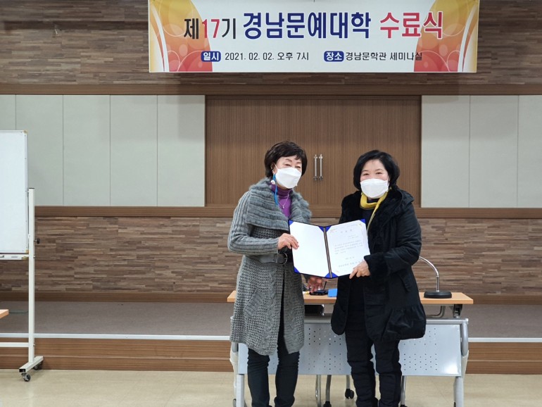 제17기 문예대학 수료식 작성자 경남문학관 댓글 0건 조회 354회 작성일 21-02-03 14:58 본문 -시창작반 수료식일시:2021.02.02.(19시) 화요일장소:경남문학관 세미나식 목록